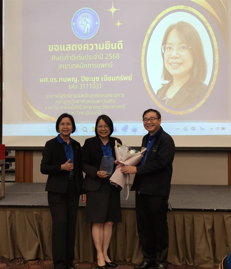หลักสูตรวิทยาศาสตรมหาบัณฑิต สาขาวิชาเทคโนโลยีชีวภาพ ขอแสดงความยินดีอย่างยิ่งแก่ ผศ.ดร.ทนพญ. ปิยะนุช เนียมทรัพย์ อาจารย์ประจำหลักสูตร ผู้ได้รับ “รางวัลศิษย์เก่าดีเด่น สาขาเทคนิคการแพทย์” ประจำปี 2568 ตามประกาศจากสมาคมศิษย์เก่าคณะเทคนิคการแพทย์ มหาวิทยาลัยเชียงใหม่ ผศ.ดร.ทนพญ. ปิยะนุช เป็นผู้สอนรายวิชาด้านจุลชีววิทยา และมีความเชี่ยวชาญเฉพาะทางในสาขาเทคโนโลยีชีวภาพด้านจุลชีววิทยา รวมถึงการศึกษาการใช้ประโยชน์จากจุลินทรีย์ในด้านต่าง ๆ ซึ่งมีบทบาทสำคัญอย่างยิ่งต่อการพัฒนาการเรียนการสอนและวิจัยของหลักสูตร นอกจากนี้ อาจารย์ยังปฏิบัติหน้าที่ในฐานะเลขานุการอาจารย์ผู้รับผิดชอบหลักสูตร ช่วยขับเคลื่อนงานวิชาการ และการบริหารหลักสูตรอย่างเข้มแข็งและต่อเนื่อง รางวัลศิษย์เก่าดีเด่นครั้งนี้นับเป็นความภาคภูมิใจร่วมกันของหลักสูตรฯ สะท้อนให้เห็นถึงความทุ่มเท การทำงานอย่างเป็นระบบ และคุณูปการของอาจารย์ต่อวงวิชาชีพเทคนิคการแพทย์และวงการอุดมศึกษา หลักสูตรฯ ขอร่วมแสดงความยินดี และขออวยพรให้ ผศ.ดร.ทนพญ. ปิยะนุช เนียมทรัพย์ ประสบความสำเร็จและก้าวหน้าในเส้นทางวิชาการและงานวิจัยต่อไป